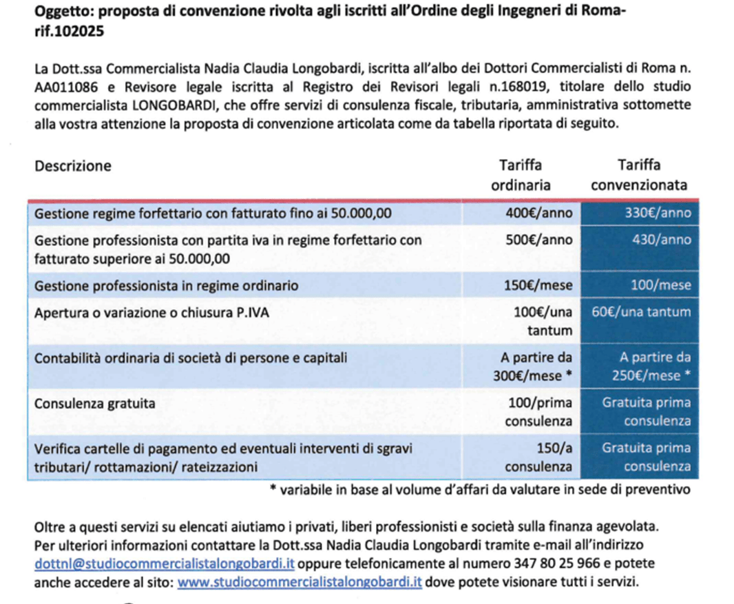 Studio Commercialista Longobardi 12 November 2025 in Assicurazioni, Finanza e Consulenza Previdenziale, Convenzioni Studio Commercialista Longobardi Maggiori informazioni in allegato:– Proposta