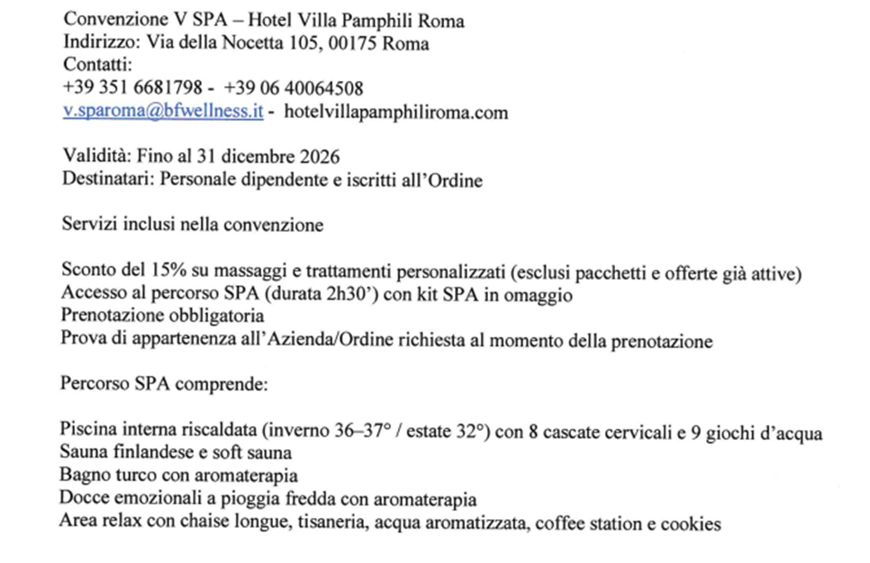 V SPA – Hotel Villa Pamphili Roma
